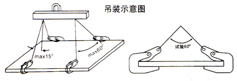 ● 用途:适用于钢板水平吊运。 ● 载荷范围:0-6吨。 ● 采用低碳优质合金钢制造。 ● 以二只试验为额定载荷,吊装作业中二只或四只成组使用。 ● 吊运过程中不得碰撞被吊物。 ● 试验载荷为2倍工作载荷。 ● 严禁超载使用。