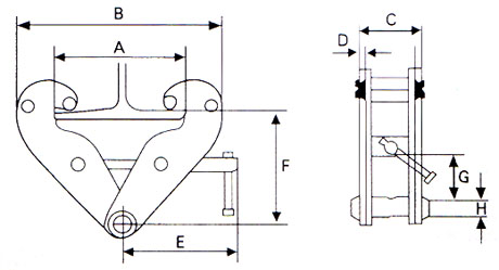 ● 用途:固定于工字钢上支撑和起吊葫芦设备。 ● 载荷范围:0-5吨。 ● 采用低碳优质合金钢制造。 ● 以单只试验为额定载荷,试验载荷为2倍工作载荷。 ● 使用方法:逆时针旋螺纹轴,松开钳口,如图夹入工字钢下缘,顺时针旋螺纹轴,加紧即可。 ● 严禁超载使用。